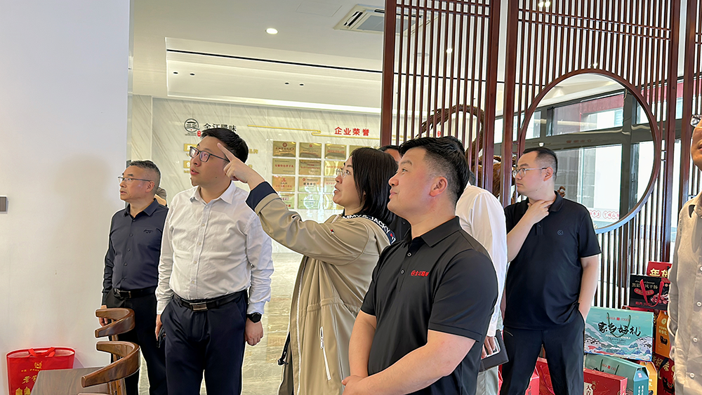 5月9號下午,黃山區(qū)人民政府副區(qū)長吳亮,中關(guān)村協(xié)同發(fā)展有限公司副總經(jīng)理史娜等一行領(lǐng)導(dǎo)蒞臨黃山全江生態(tài)農(nóng)業(yè)科技有限公司參觀考察。全江臘味董事長江禮明、總經(jīng)理胡國峰熱情接待并陪同參觀。